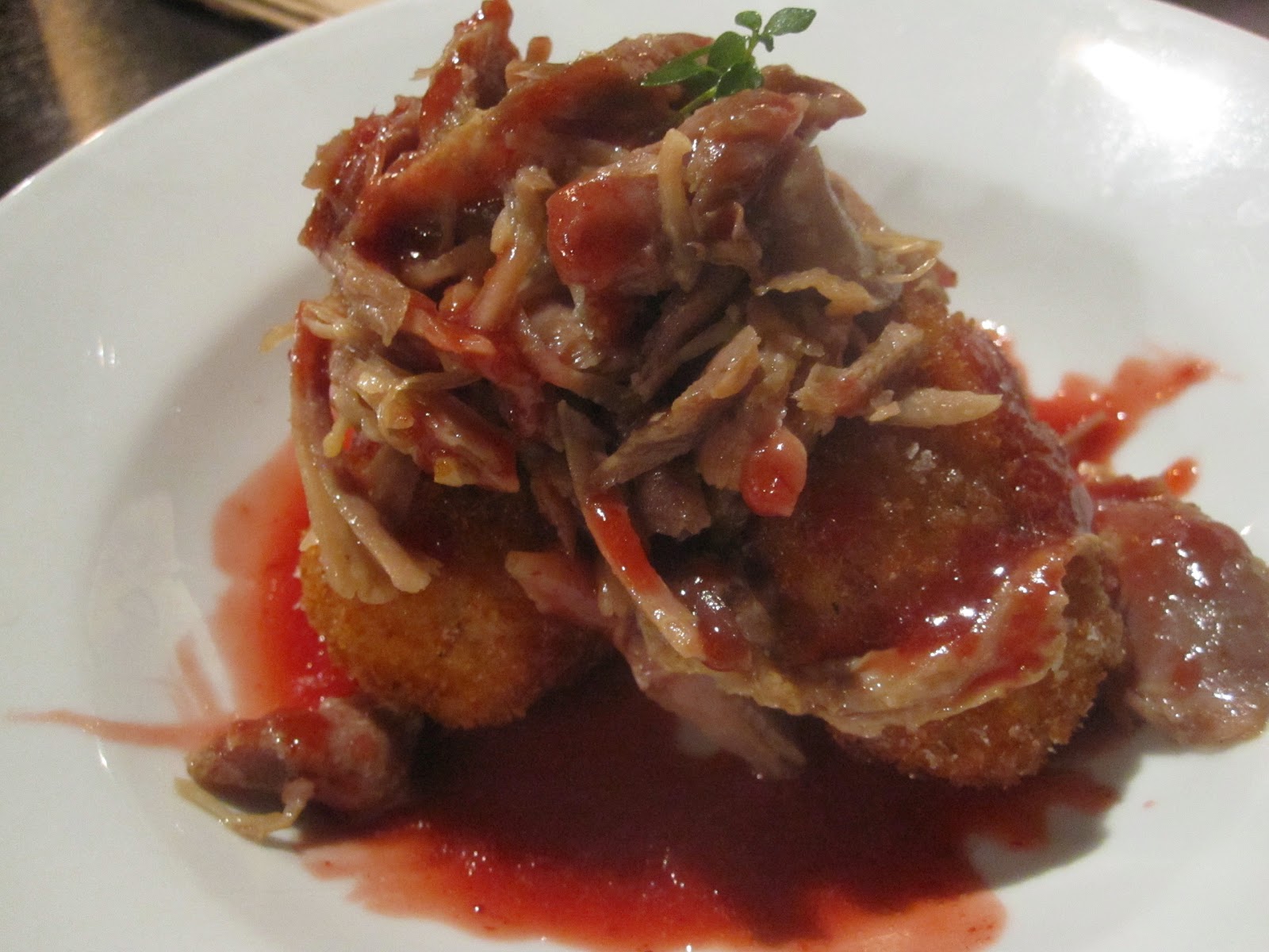 crispy curried calf brain - butternut squash puree, arugula gremolata, grape compote